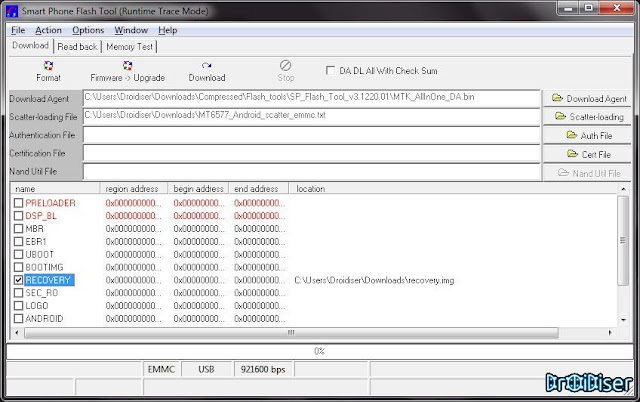 Click the Scatter loading button and locate the scatter loading file - In the list of partitions that appear after the scatter file is loaded, untick everything except recovery. Then click on recovery, it will ask you the location of the recovery file, which is, again, present in the folder in which you extracted clockworkmod recovery zip.